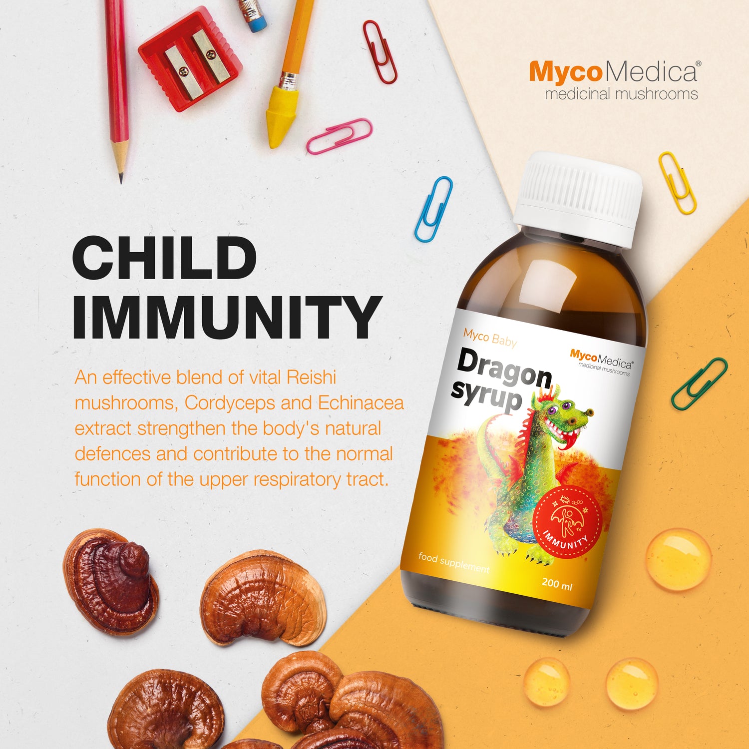 MycoBaby Dragon syrup is based on the Long Tang Jiang recipe of traditional Chinese medicine to support immunity.